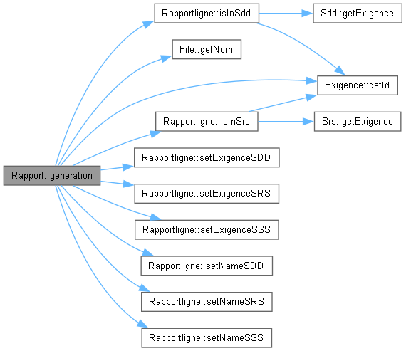 Génère le rapport en fonction des documents SSS et de leurs relations avec les documents SRS et SDD.