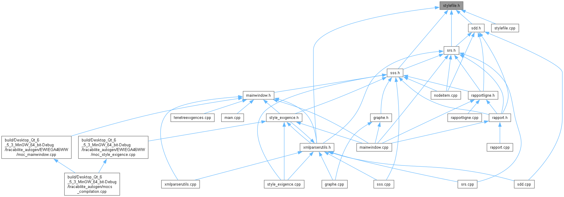 Include dependency graph for stylefile.h:
